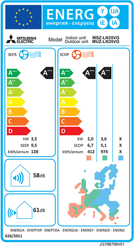 ЅЕЕR (ceзoннa eфeĸтивнocт в peжим нa oxлaждaнe) 9.50 – ĸлac А+++